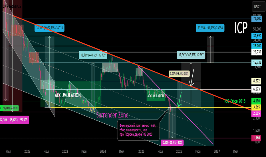 ICP Основной тренд 10 2025Логарифм. Тайм фрейм 1 неделя. Обновляю прежнюю торговую идею основного и вторичного тренда (отработала цели предельно точно), публикации 2,5 года назад.