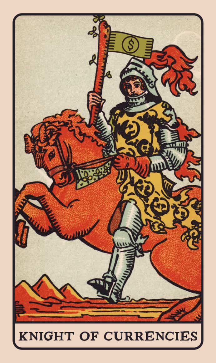 Мы выпустили эту колоду, когда рынок был на подъёме. В неё входит 78 карт Старших и Младших Арканов, среди которых Выход, Лонг, Шорт, YOLO, Луна и многие другие. Прикоснитесь к нашим ярким картам, чтобы почувствовать силу магических индикаторов и узнать все тайны движений рынков.