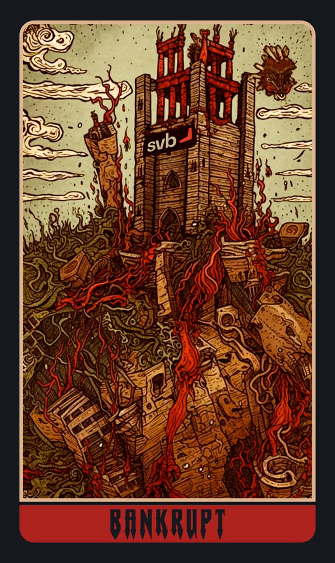 В эту готическую колоду вошли новые карты, в том числе Суд FTX, Слепой GPT, Падающая Luna, Беспощадный Генслер и Банкрот Силиконовой долины. Готовы принять тёмную сторону, чтобы увидеть будущее финансового мира?