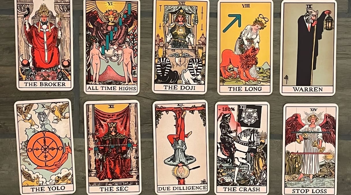 Мы выпустили эту колоду, когда рынок был на подъёме. В неё входит 78 карт Старших и Младших Арканов, среди которых Выход, Лонг, Шорт, YOLO, Луна и многие другие. Прикоснитесь к нашим ярким картам, чтобы почувствовать силу магических индикаторов и узнать все тайны движений рынков.