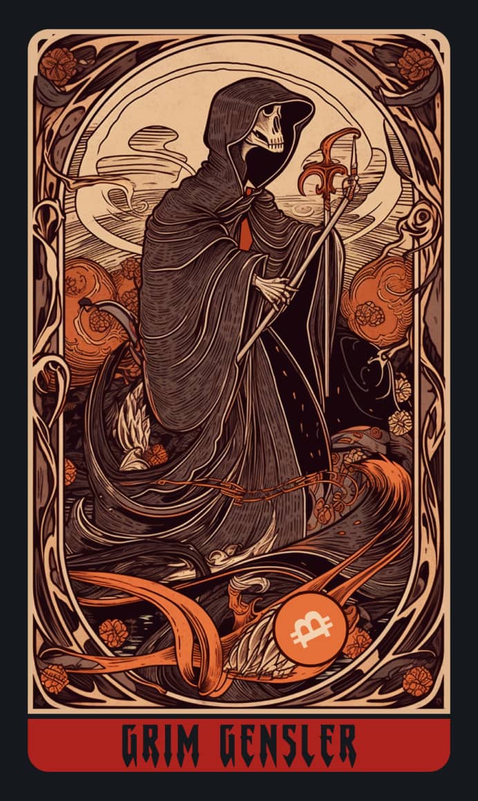 В эту готическую колоду вошли новые карты, в том числе Суд FTX, Слепой GPT, Падающая Luna, Беспощадный Генслер и Банкрот Силиконовой долины. Готовы принять тёмную сторону, чтобы увидеть будущее финансового мира?